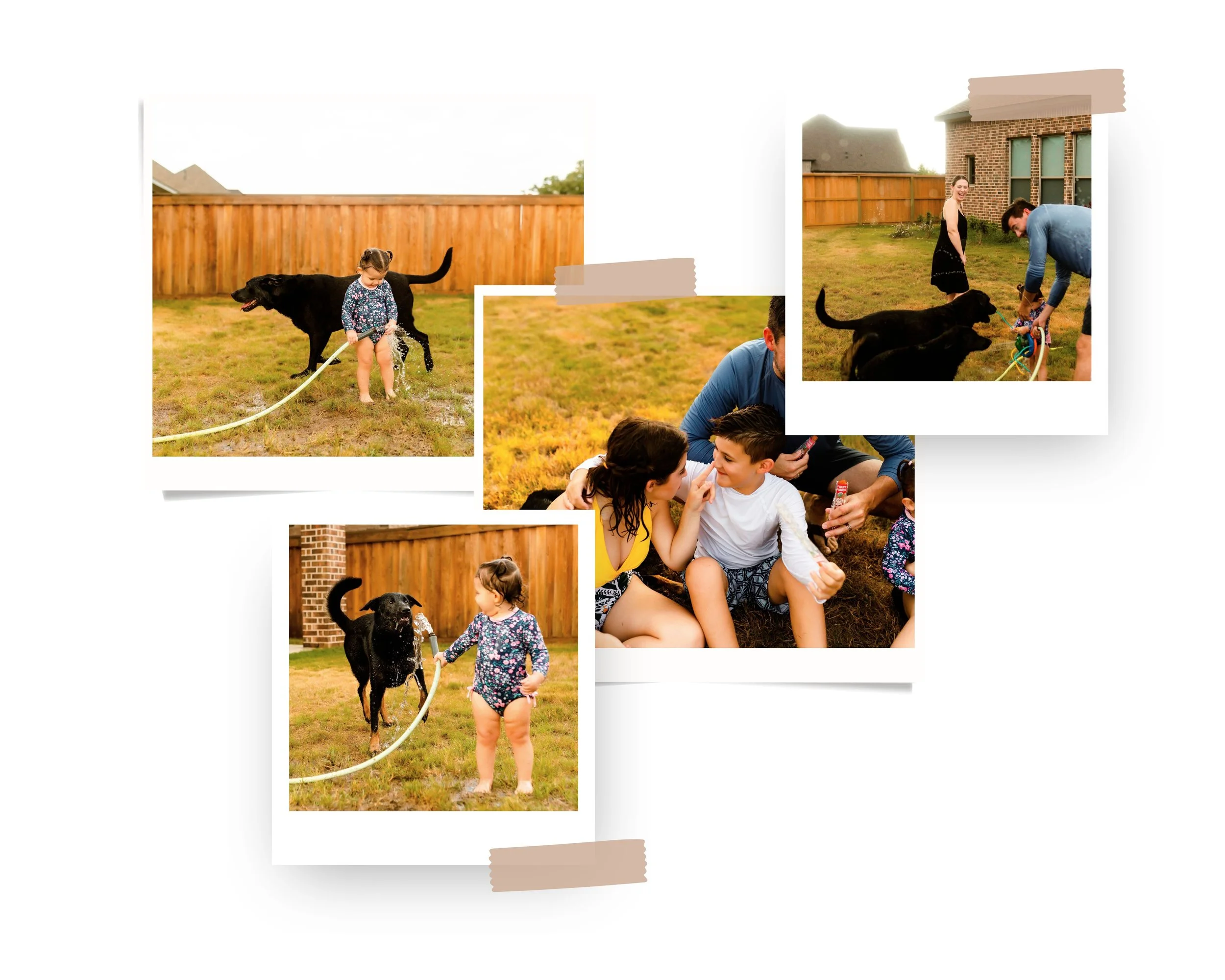 Their dog ran loops through the yard while the toddler sprayed the hose wildly in the air. They sat together in the grass, popsicles in one hand, and petting dogs with the other. The kind of small, honest moments that often go unnoticed became the story we documented together.